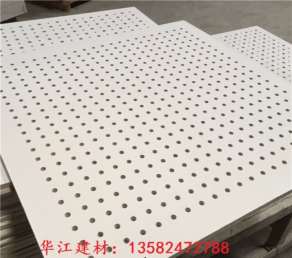 4、 安装简单,使用起来跟普通石膏板使用没区别,普通石膏板怎么安装,穿孔吸音石膏板就怎么安装。本产品是采用优质石膏板使用进口精密数控机床,对石膏板采取贯通式穿孔而后在背面粘贴透声吸音布。穿孔吸音石膏板的吸声机理是由于本产品采取了高密度贯通式穿孔,同时背面吸音布有众多微细小孔。声波沿着这些空隙可以深入材料内部,与材料发生摩擦将声能转化成热能。穿孔石膏吸音板具有绿色环保、无毒无害(100%不含石棉,苯、甲醛等有害物质)强度高,韧性好、性能稳定、防火、防潮等,是其它同类产品无法比拟的。