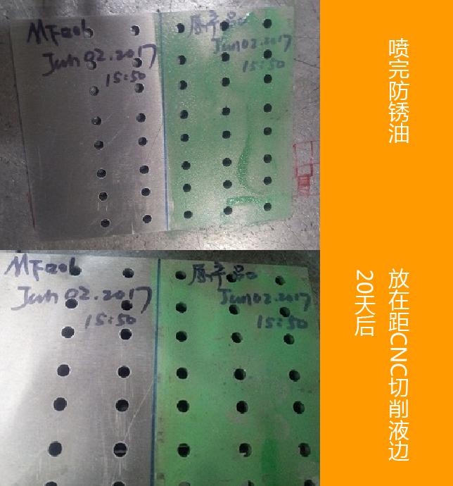 上图显示CORRO-001防锈剂防锈效果非常理想,早符合PAHS,ROHS,正己烷含量各种要求,在现今环保要求日趋严格的情况下,用得经济,买得安心。